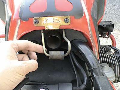 本ではR100RSを題材にしているのですが、これだとリアサスが垂直に近い角度になっています。一方R100GSはリアサスが45度近く斜めになっています。GSだとこれがつっかえ棒になってしまうのでした。また本のモデルはモノレバーなのでアームがないのでした。